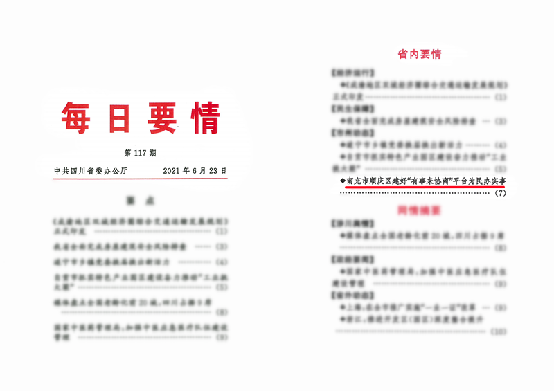 省委办公厅《每日要情》刊发顺庆政协“有事来协商”工作