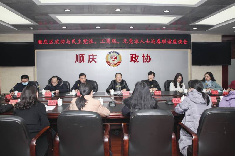 1月20日,顺庆区政协召开区级各民主党派、工商联、无党派人士迎春联谊座谈会。区政协党组书记、主席吴斌出席会议并讲话,区委常委、统战部部长、区政协党组副书记田丽,区政协领导班子成员,区各民主党派、工商联负责人,区委统战部负责人参加会议。