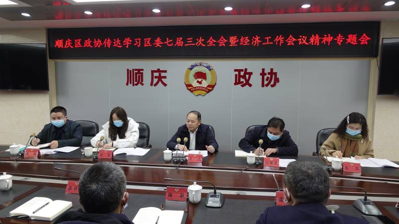 2月10日,顺庆区政协召开干部职工会,专题传达学习区委七届三次全会暨经济工作会议精神。区政协党组书记、主席吴斌出席会议并讲话。
