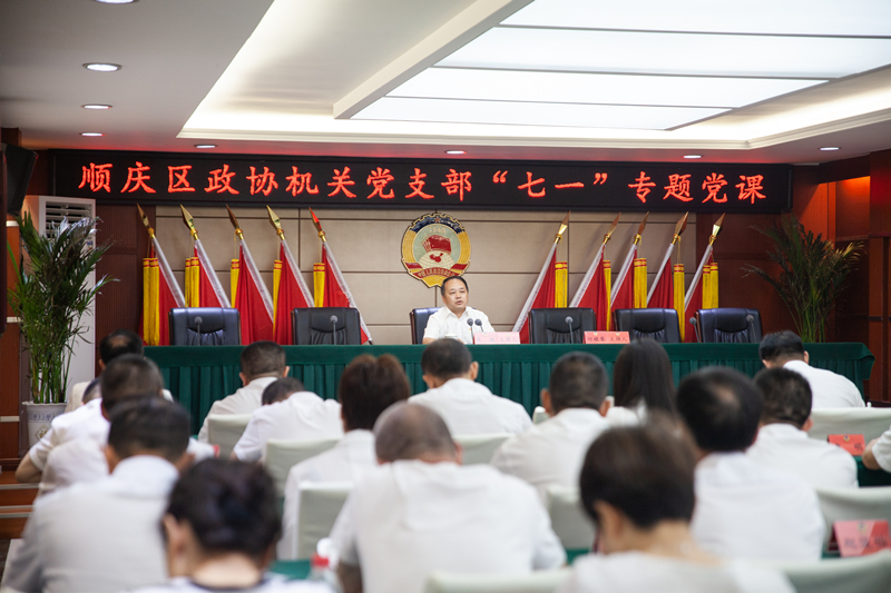 参观活动结束后,在顺庆区政协机关六楼常委会议室,吴斌以《铮铮誓言守初心 砥砺前行担使命》为题,围绕“在入党誓词的变化中感悟永恒追求;在入党誓词的内涵中坚守入党初心;在入党誓词的践行中担当政协使命”三方面内容,为机关全体党员讲授了一堂非常生动、十分精彩的党课。
