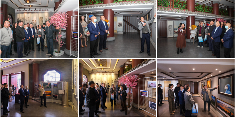 会议结束后,与会人员在顺庆区政协书画院门口合影留念,并参观“喜迎二十大,迈步新征程”诗书画摄影联展。会展现场气氛活跃,一幅幅作品苍劲有力、气势磅礴、惟妙惟肖,赢得了大家阵阵掌声和连连称赞。