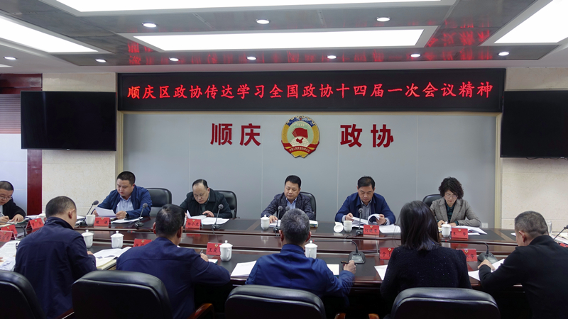 3月14日下午,顺庆区政协专题传达学习全国政协十四届一次会议精神,研究贯彻落实意见。区政协党组书记、主席吴斌主持会议并讲话。