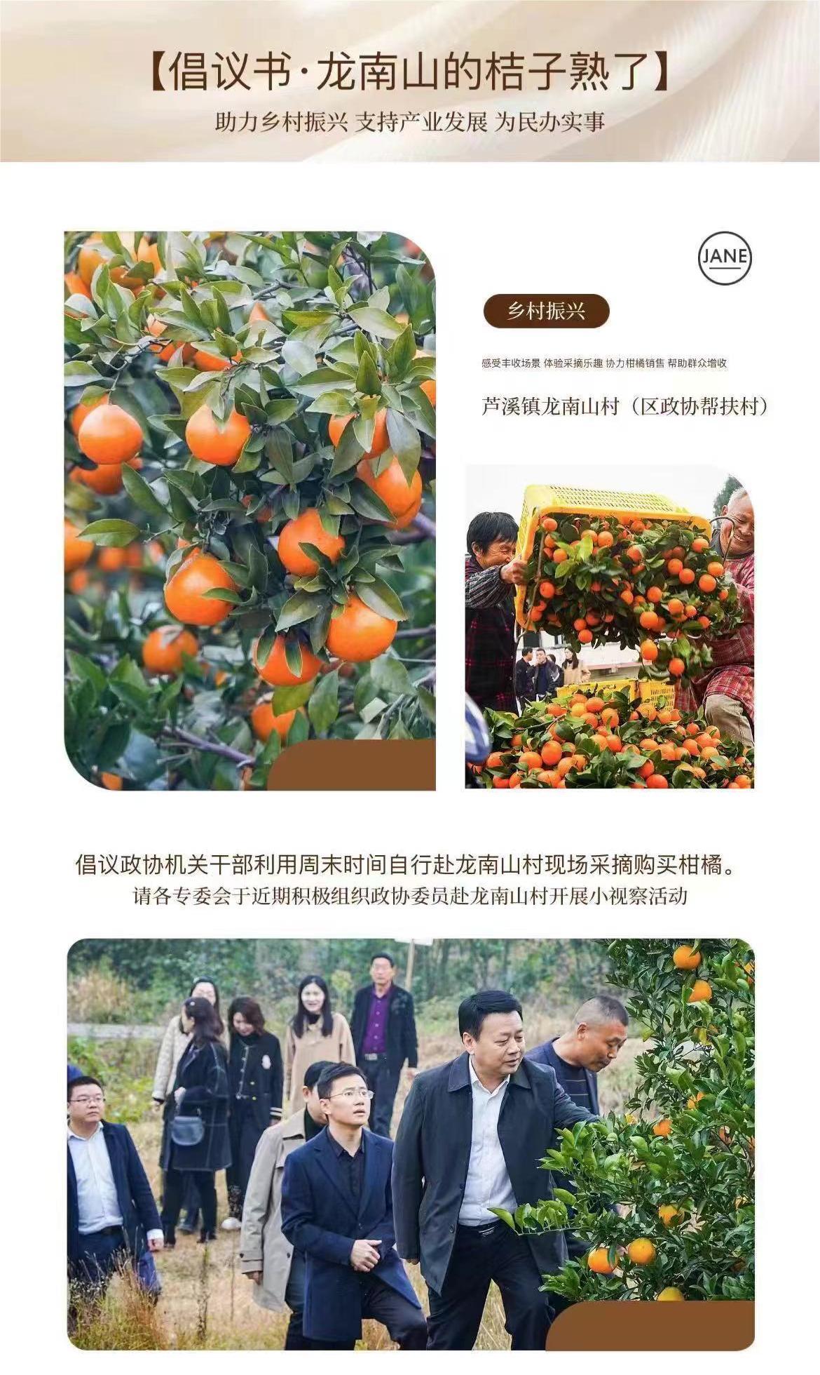 近期,顺庆区政协结合正在开展的主题教育和“四下基层”要求,深入龙南山村调研乡村振兴产业发展情况,并针对“柑橘销售难”问题,发出“助力乡村振兴,支持产业发展,为群众办实事”倡议,积极发动广大政协委员和政协机关干部利用周末时间自行赴芦溪镇龙南山村现场采摘选购,感受丰收场景,体验采摘乐趣,协力柑橘销售,帮助群众增收。