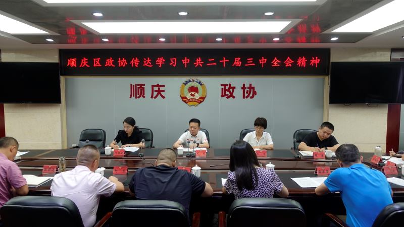 7月26日,顺庆区政协召开专题会议,传达学习中共二十届三中全会及区委七届八次全会精神。区政协党组书记、主席吴斌主持会议并讲话。