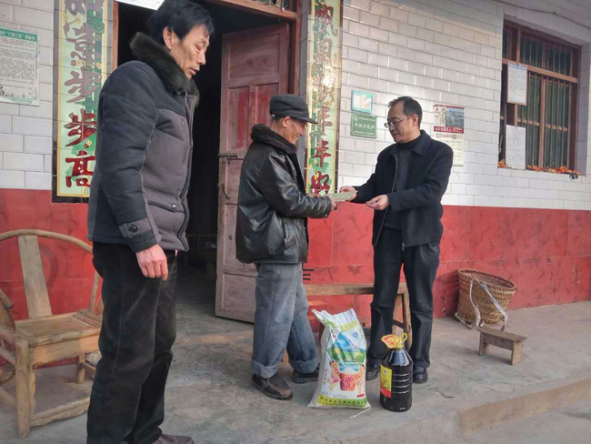 1月17日,顺庆区政协副主席李天祥、秘书长杨忠国带领机关干部职工深入梵殿乡董干沟村、费家沟村、傅家沟村走访慰问贫困户,为他们送去了大米、食用油等生活用品和慰问金共计3万余元,并为他们送上新春美好祝福。