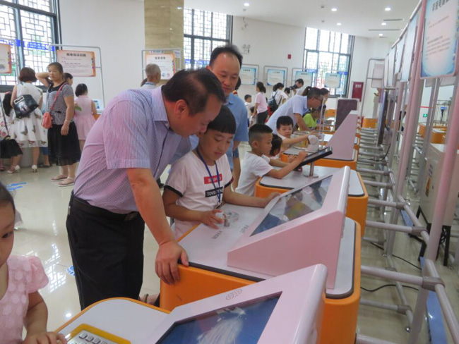 适逢“六一儿童节”,来参观巡展的小朋友较多。吴斌亲切地与小朋友们交流互动,为他们送去节日的祝福,勉励他们认真学习科学技术知识,积极培养崇尚科技、热爱科技、探索科技的良好习惯,不断增长见识和本领,在科技雨露的滋润下健康、茁壮、快乐地成长。