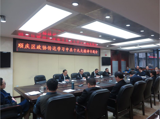 10月30日,顺庆区政协召开干部职工大会,学习传达中共十九大精神。会议由区政协党组成员、秘书长杨忠国主持。
