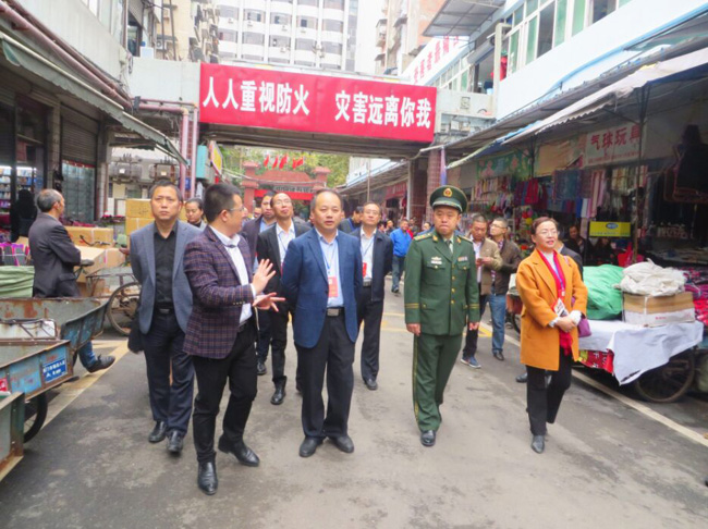 11月17日,区政协主席吴斌率部分区政协委员视察了我区专业市场消防安全工作,区政协副主席李天祥、秘书长杨忠国陪同视察。