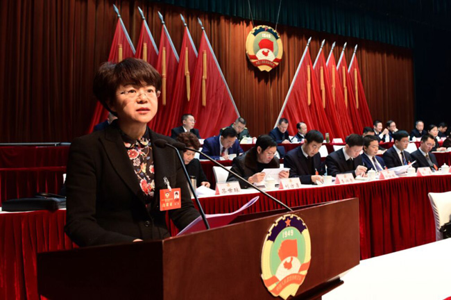 张霞代表政协第六届南充市顺庆区委员会常务委员会向大会报告了提案工作情况。