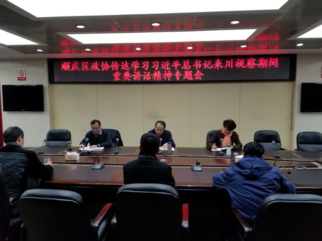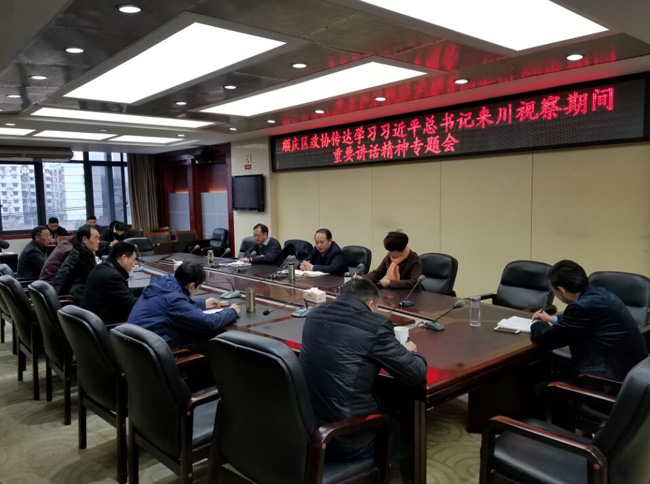 2月23日,顺庆区政协召开干部职工大会,专题传达学习习近平总书记来川视察期间重要讲话精神。
