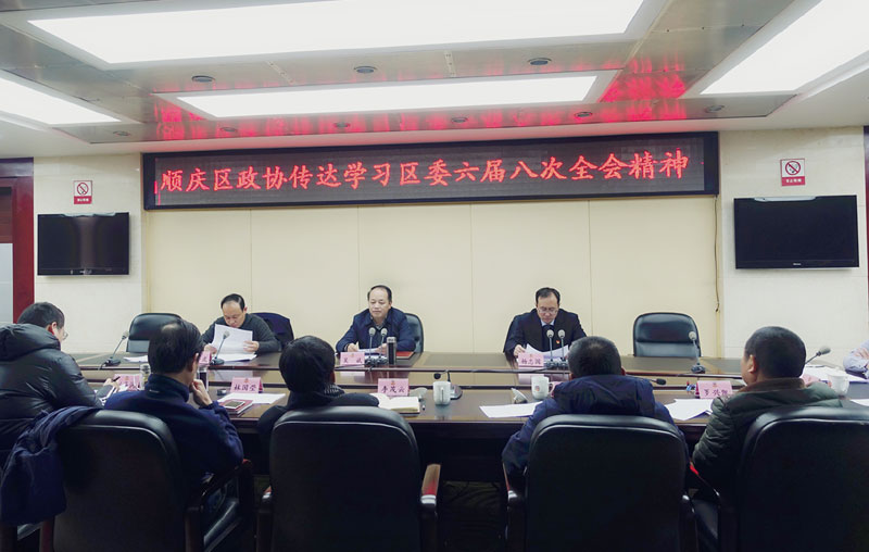 吴斌指出,区委六届八次全会是在全区上下深入贯彻落实省委十一届四次全会和市委六届九次全会精神的关键时刻召开的一次重要会议,全会确定的“创建全省县域经济强县”发展任务,“城区、园区、景区”三大主战场,“政治建设、空间拓展”等十个方面重点工作,为推动顺庆转型发展、创新发展、跨越发展提供了遵循、指明了方向。会议要求,区政协委员和机关干部职工要认真学习、深刻领会、全面贯彻落实。