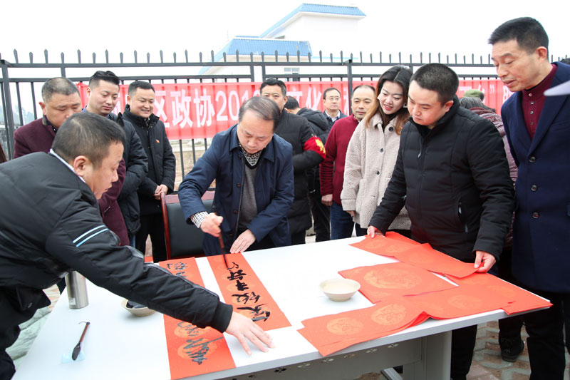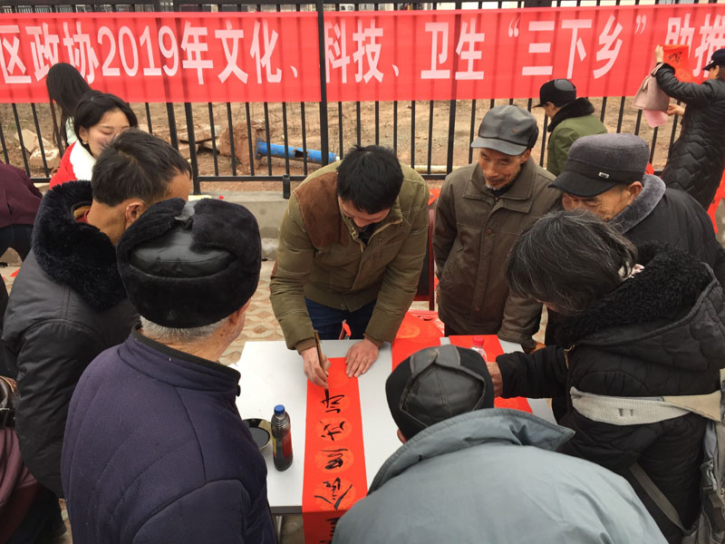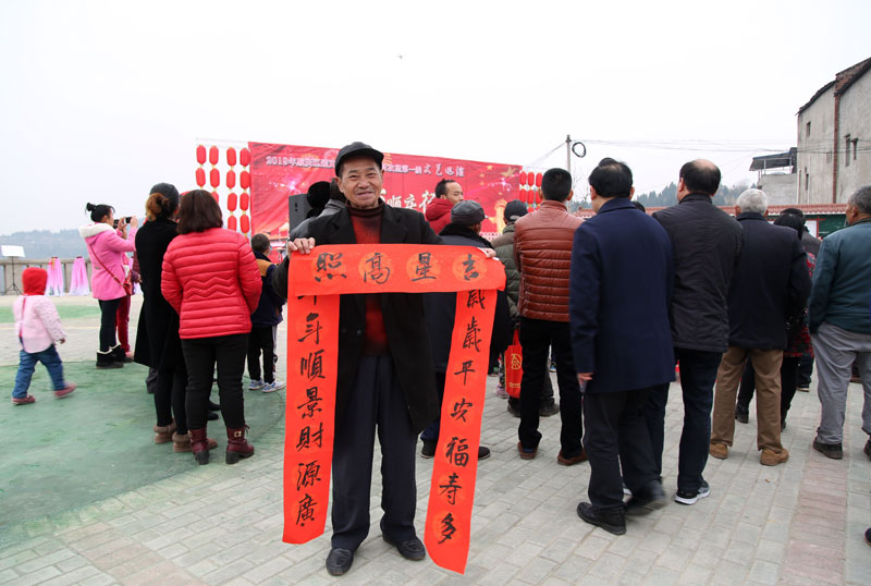 “去年政协的‘三下乡’活动,我没领到吴主席写的对联,今年我早就到了在这里等到的”,群众田国勇拿着对联高兴的说。