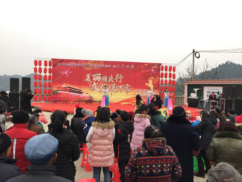随着祝福礼、健康礼、惠农礼的不断送出,区政协联合区文化馆组织的文艺演出精彩开演,器乐合奏《歌唱祖国》、川剧《变脸》、舞蹈《刀马旦》、独唱《永远》、魔术《金蝉脱壳》等节目陆续上演,既有群众耳熟能详的歌曲、舞蹈,也有扣人心弦、神秘莫测的魔术等,一个个聚焦社会新风新貌、弘扬地方文化特色、贴近百姓日常生活的节目,赢得了群众的阵阵喝彩,台上的演员演得起劲儿,台下的村民看得更是拍手叫好,现场一片欢声笑语。