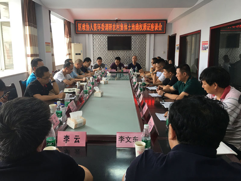 调研组一行采取入户调查、分组谈话、查阅资料等方式,详细了解了农村集体土地确权颁证的情况。在随后召开的座谈会上,区农经局围绕我区农村集体土地确权颁证情况作了详细汇报,区农业农村局、桂花乡、龙桂乡和业主代表作了交流发言,与会区政协委员围绕我区农村集体土地确权颁证工作提出了许多针对性和可操作性的意见及建议。