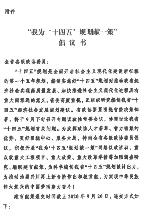 关于转发政协四川省委员会办公厅《“我为‘十四五’规划献一策”倡议书》的通知