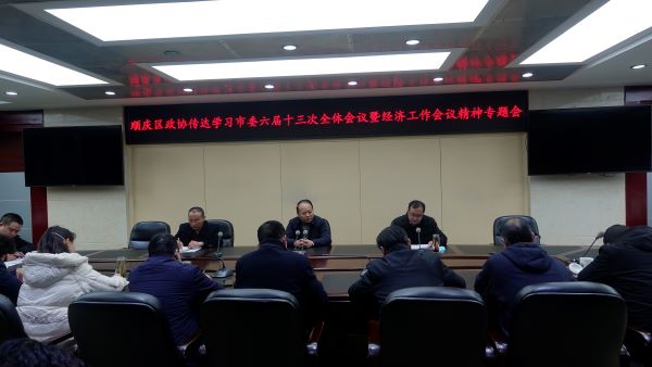 12月31日,顺庆区政协召开机关干部职工会议,传达学习市委六届十三次全会暨经济工作会议精神。会上,区政协党组成员、机关党组书记、秘书长杨忠国组织学习市委六届十三次全会暨经济工作会议精神。区政协党组书记、主席吴斌出席会议并讲话。