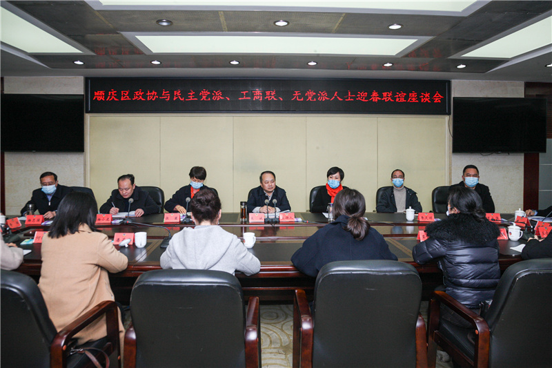 2月4日下午,顺庆区政协召开民主党派、工商联、无党派人士迎春联谊座谈会,区政协党组(主席)会议成员,区委统战部、区级各民主党派、区工商联负责人和无党派人士代表参加会议,区委常委、统战部部长田丽出席会议,区政协党组书记、主席吴斌主持会议并讲话。