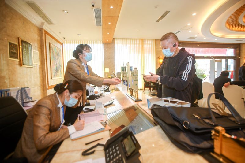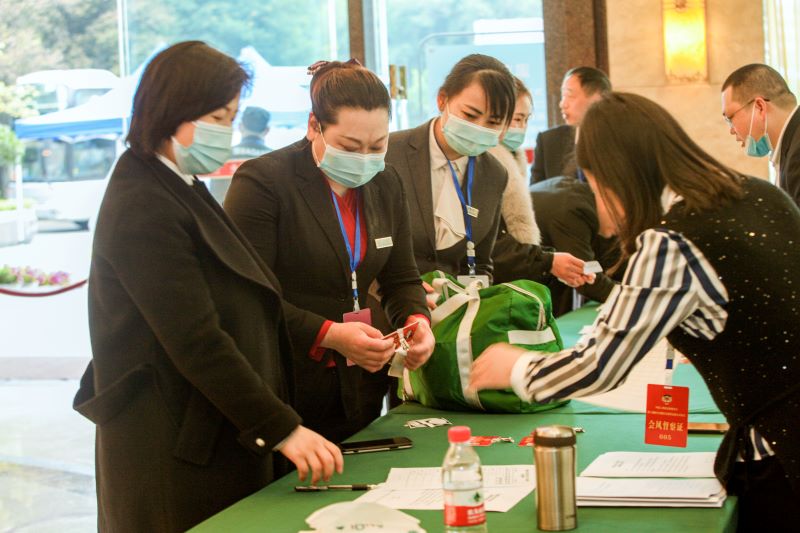 当日上午8时,记者在报到现场看到,会务组工作人员全部到位,报到表、出席证、文件资料摆放整齐,工作人员正在热情为政协委员办理报到手续,发放会议材料。整个报到程序简洁、规范,井然有序。另一边,工作人员在为委员们做核酸检测,整个疫情防控措施严格规范。