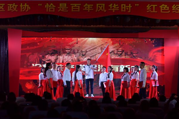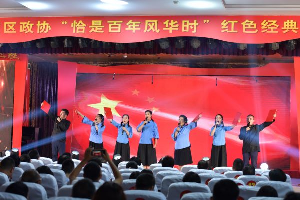 “一条游船,劈开了南湖的波浪,十几个热血青年,在运筹一个红色的理想……”区政协机关干部饱含着对中国共产党的热爱之心,饱含着南湖畔红船旁的自豪之情,将政协人对党、对祖国、对人民的深厚情感融入到《红船,从南湖起航》,一句句经典之声,令人心潮澎湃;一段段经典诵读,传递红色精神,赢得在场观众掌声一片。
