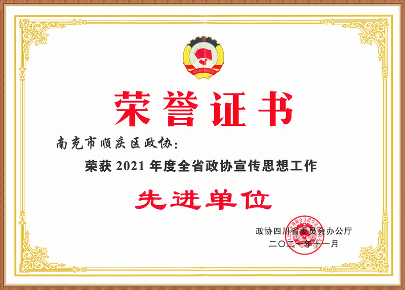 顺庆区政协荣获全省政协宣传思想工作先进单位