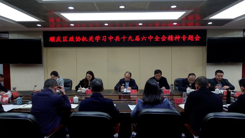 11月16日,顺庆区政协召开传达学习中共十九届六中全会精神专题会。区政协党组书记、主席吴斌出席会议并讲话。